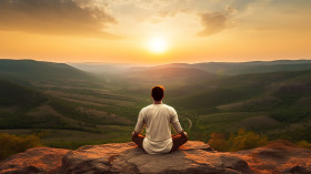 Hiker taking a break on summit