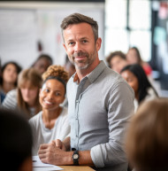 teacher professor student lecture university school classroom portrait teach man high class highschool college education mature happy smile people knowledge proud exam looking mentor professional lesson secondary successful success library college professor satisfied high school confident teacher and student teacher in classroom lecturer standingImagine Buddy