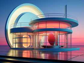 abstract design 3d water technology art house city illustration construction light building wall white interior room architecture creative wave geometric color floor modern corporate gradient dream shape futuristic geometry architectural render hall structure composition perspective ceiling rendering smooth empty glossy estate shelves large passage inside reflect indoor round Art Moderne Architecture ModerneImagine Buddy