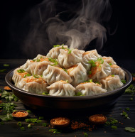 A photo of a dumplings, fast food advertisement stock images