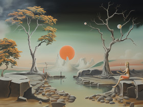 surreal landscape fantasy forest color dreamy render background fall art banner abstract spiritual vector flower sky nature illustration space autumn creative orange artistic imagination surrealism designer landscaping image wonderland colourfImagine Buddy