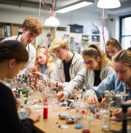 A group of students celebrating a successful experiment