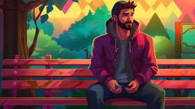 Guy in hoodie taking a break on park bench