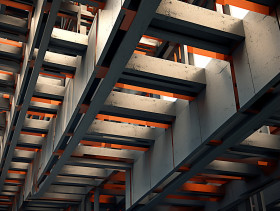 Modern office building exterior, brutalism architectural