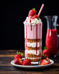 A photo of a strawberry milkshake, beverage advertisement photography inspiration