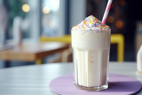 A photo of a vanilla milkshake, beverage advertisement photography inspiration