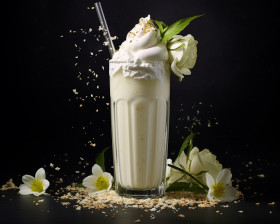 A photo of a banana milkshake, beverage advertisement photography inspiration
