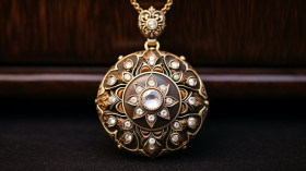 background design 3d wedding art gold gift white diamond luxury cute jewelry stone beautiful decoration gemstone jewel jewellery necklace pendant production round 3d rendering gold brown surfaceImagine Buddy