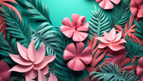 cut paper composition table design summer tree spring light leaf floral creative plant tropical vacation desk pink beautiful natural palm foliage decoration decor exotic surface horizontal arrangement big simple two top view multicolored background object green pjnkImagine Buddy