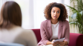 Young woman seeks help from therapist