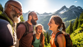 Parents and kids hiking in nature
