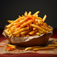 A photo of a french fries, fast food advertisement stock images