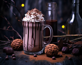 A photo of a chocolate milkshake, beverage advertisement photography inspiration