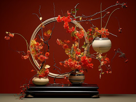 ikebana flower arrangement floral art Japanese flower arrangement natural materials flowers plants vase design creativity beautyImagine Buddy
