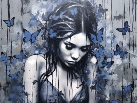stencil painting woman butterfly hair art portrait beauty nature feminine creativity imaginationImagine Buddy