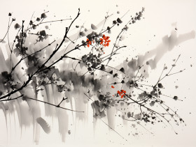 sumi ink wash Japanese painting traditional art brushstroke monochrome nature landscape flora fauna minimalismImagine Buddy