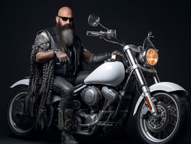 Biker fashion model riding motorcycle