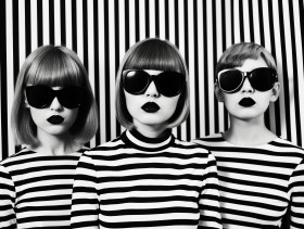 Three stylish women in stripes