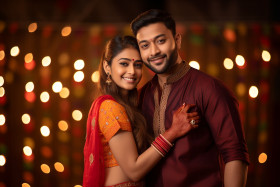 diwali festival celebration home relationship bonding family time indian couple traditional ethnic clothing hugging looking camera happy love joy togetherness happiness celebration tradition culture india asia hindu hinduism celebration light victory good over evil knowledge ignorance spiritual prosperity new beginnings wealth health happinessImagine Buddy