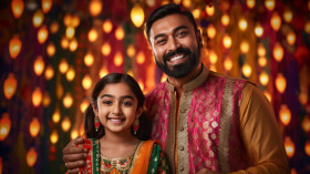 diwali india indian traditional clothing father daughter family celebration festival culture heritage joy happiness love bond relationship tradition ritual ceremony backdrop bright colors face paint faces painted happy smiling together unity bonding love celebration festival culture heritage joy happinessImagine Buddy