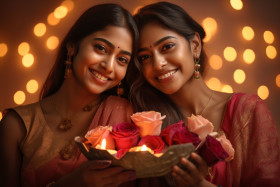 diwali sisters lamps rose petals happy portrait celebration festival india hinduism light happiness love joy family togetherness tradition culture heritage custom religion festival of lights diya diwali decoration rangoli firecrackers sweets gifts new clothes shopping happiness prosperity good luck wealth fortune blessings diwali greetings diwali wishesImagine Buddy