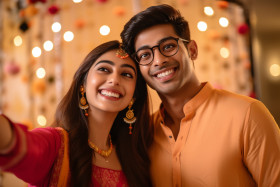 indian couple selfie festive happy celebration love joy happiness together family friends culture tradition religion festival diwali navratri dussehra holi christmas new year celebration party fun laughter smile pose photo memory moment capture happiness love joy happiness together family friends culture tradition religion festivalImagine Buddy