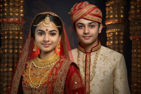 A picture of a brother and sister wearing traditional clothes to celebrate the festival of bhai dooj, family diwali celebration image