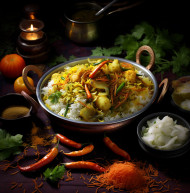 biryani food delicious mouth watering tasty appetizing flavorful aromatic savory spicy creamy rich hearty satisfying comforting home cooked healthy halal kosher exotic international indian pakistani bangladeshi mughal royal festive celebration party picnic happiness joy indulgence temptation treat craving comfort food soul food imaginebuddy advertisementImagine Buddy