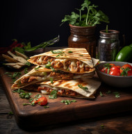 quesadilla wrap dip summer nachos cheese tortilla chicken guacamole grilled sandwich food sliced green meat red salad tomato healthy vegetable corn dinner meal cuisine snack lunch wooden sauce pepper spice parsley spicy chili sour spinach salsa napkin traditional sombrero maracas rustic prepared mexican nobody closeup crispy hot toasted freshImagine Buddy