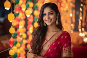 diwali festival india indian woman young beautiful portrait traditional sari dress greeting sister celebration culture family happiness love light joy happiness gift mithai sweets rangoli diya lamp fireworks crackers sparklers tradition custom auspicious festival joy happiness celebration love family culture mithai sweets rangoli diya lampImagine Buddy