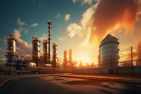An industrial plant is shown in the background, industrial, manu