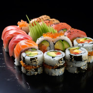 fast food wrap breakfast lunch dinner snack delicious mouthwatering appetizing craveable fresh juicy flavorful cheesy saucy crispy crunchy gooey melty instagrammable shareable tempting satisfying salad imaginebuddy advertisement Sushi rolls rollsImagine Buddy