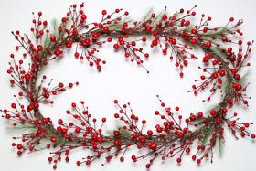 A picture of a christmas frame made with pine needles and red berries, christmas festival celebration images