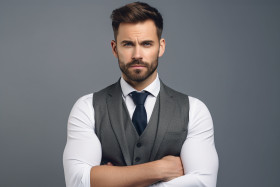 handsome young businessman adjusting sleeves gray background photo portrait suit tie confident professional successful career goals ambition motivation determination focus success achievement goal target ambition motivation determination focus success achievement business corporate executive leader management leadership professional confident determined motivated ambitious successfulImagine Buddy