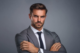 handsome young businessman adjusting sleeves gray background photo portrait suit tie confident professional successful career goals ambition motivation determination focus success achievement goal target ambition motivation determination focus success achievement business corporate executive leader management leadership professional confident determined motivated ambitious successfulImagine Buddy
