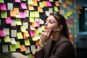 brainstorming stickynotes work youngwoman ideas creativity planning project strategy business meeting office thinking writing idea solution problem challenge opportunity collaboration teamwork innovation inspiration motivation inspiration communication presentation education learning growth development success achievement future potential growth success career opportunity ambition drive passion focus determinationImagine Buddy