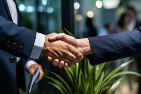 A close up photo of business people shaking hands in an office meeting showing the concept of business partnership, business and corporate inside office image