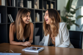 businesswomen laughing working table office bright modern team collaboration success happy productive teamwork female young professional career women diversity friendship teamwork inspiration motivation empowering leadership role models female empowerment future work-life balance flexible work happiness well-being productivity growth success women in business female entrepreneurs startup small business innovation creativityImagine Buddy