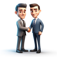 A photo of a businessman cartoon character shaking hands with his business partner, cartoon character and illustration