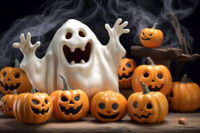 halloween ghost pumpkin candy trick-or-treat curved bat spider web wooden studio background cute spooky festive autumn fall october holiday costume party celebration decoration orange black white green scary fun candy jar trick treat treat bag october 31st halloween night all hallows eve trick-or-treating haunted house haunted forest candy corn chocolate lollipops gummy bears sour worms candy applesImagine Buddy