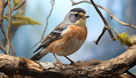 A photo of a brambling bird perched on a tree branch, royalty-free bird stock image