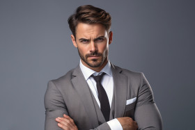 handsome young businessman adjusting sleeves gray background photo portrait suit tie confident professional successful career goals ambition motivation determination focus success achievement goal target ambition motivation determination focus success achievement business corporate executive leader management leadership professional confident determined motivated ambitious successfulImagine Buddy