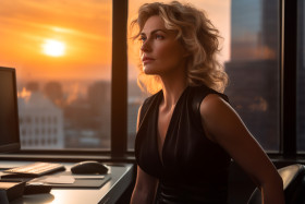 successful businesswoman black dress office sunset window city view power ambition determination success inspiration motivation leadership confidence strength female woman role model inspiration motivation success story career career goals work work hard play hard achieve overcome dreams goals aspirations motivation ambition empowerment power career woman working woman professional executive leaderImagine Buddy