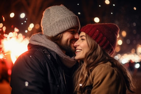 winter snow couple love romantic new year outdoors fun happy kiss hug hold hands snow fight build snowman go sledding ice skating bonfire fireworks sparklers hot chocolate champagne toast cheers winter wonderland holiday celebration together memories forever lovebirds newlyweds soulmates bliss joy happiness romance passion winter romanceImagine Buddy