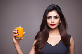 beauty body slim healthy indian woman portrait drinking glass juice orange beverage healthy lifestyle healthy eating healthy drink fresh refreshing thirst quencher vitamin c immunity boost healthy skin healthy hair healthy bodyImagine Buddy