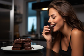 beautiful young woman chocolate kitchen eating food dessert sweet indulgence enjoyment happiness smile delight delicious yummy tasty tempting craving sinful guilty pleasure comfort food guilty treat snack indulgent decadent heavenly blissful dreamy foodgasm culinary pleasure food lover chocolate lover foodie lifestyle home everyday life domesticity womanhood femininity beauty youth happiness joy love lifeImagine Buddy