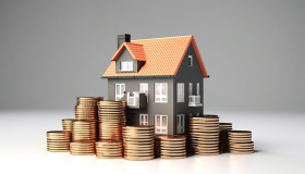 A stack of coins with a house on top on white background 3d render, home loan stock image