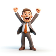 A photo of a businessman with a happy expression successful in achieving goals, cartoon character and illustration
