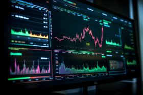 A photo of a digital stock market financial statistics on screen, finance stock photo