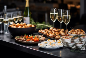 catering services snacks glasses restaurant food drink table setting event party celebration gathering people crowd happy smiling laughing enjoyment pleasure satisfaction refreshment beverage glassware tableware silverware napkins plate dish foodservice wineImagine Buddy